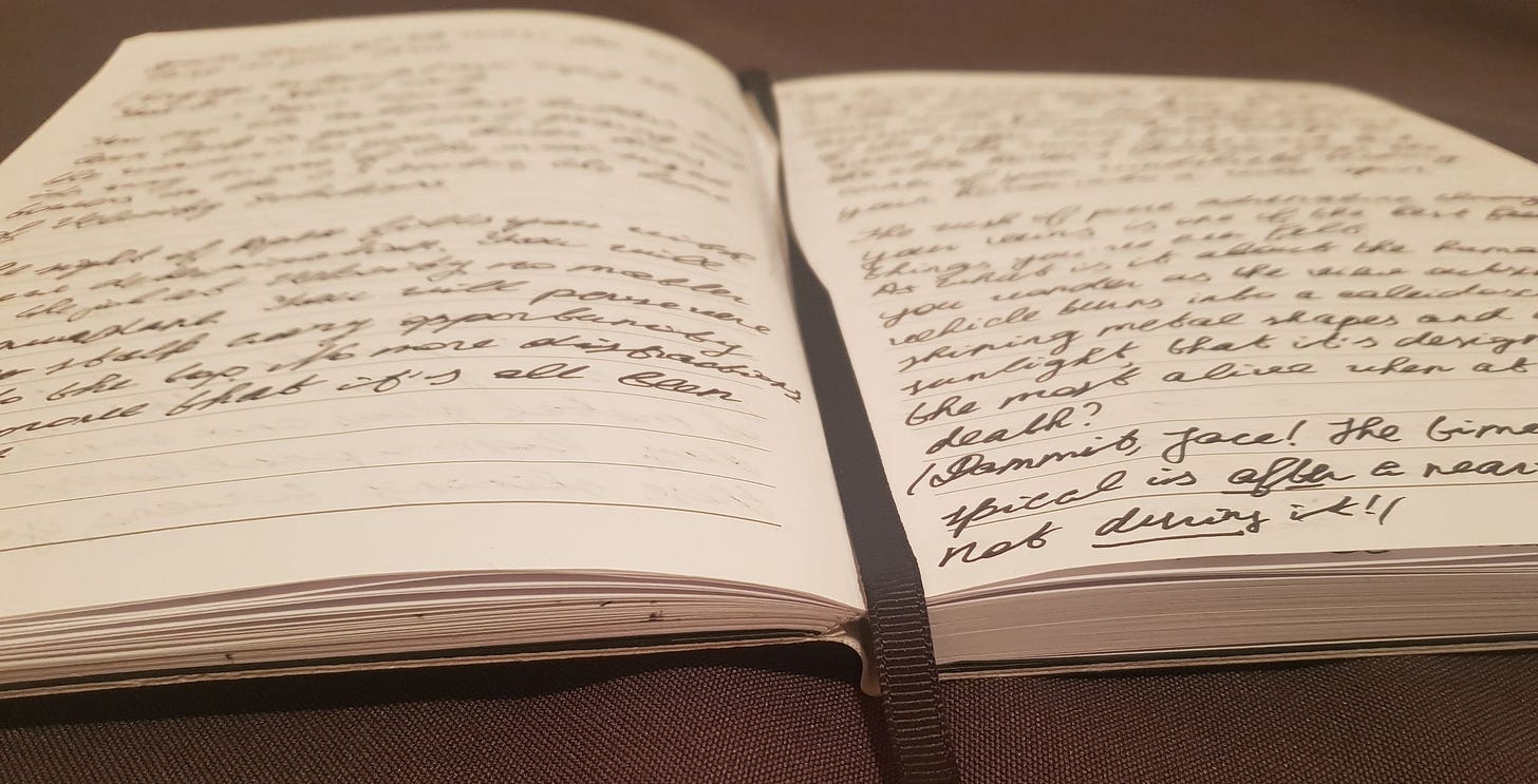 My writing saved me again in 2021. Not at any one dramatic moment, but through a series of cuts steadily ticking up towards a thousand. The slow-burning grief that doesn’t care for schedules. The steadily deteriorating relationship with my emotionally abusive, codependence-seeking mother. A combined reckoning with not new, but newly discovered issues of gender identity and neurodiversity. Coping with the fallout of medical discrimination. A crippling fear of losing my only-recently-returned loved one again.
